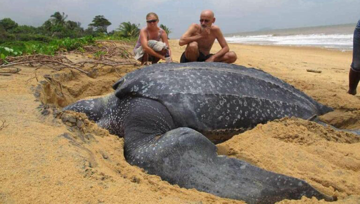 I bet the turtle was 150 years old and still young! It’s funny how her motivation falls when the water moves back. I assume she’s clever enough to wait for the water to return as it’s easier for her to move in water. Let Mother Nature do the heavy lifting. Leatherbacks are well-known for being among the biggest turtles on Earth, and unlike freshwater turtles, sea turtles get pretty darn big. How big do you ask? These turtles are capable of reaching up to seven feet in length and can weigh up 2,000 pounds, literally a ton!