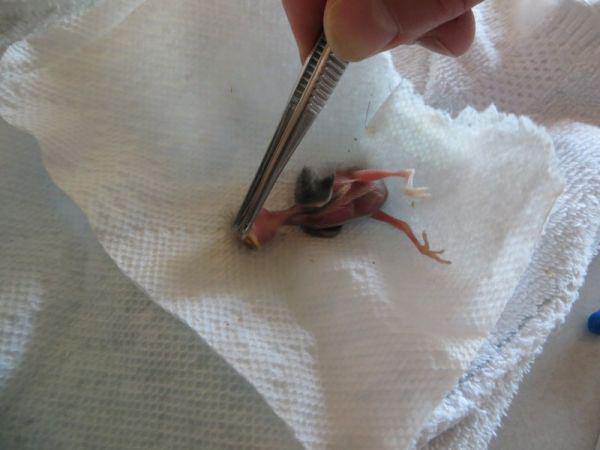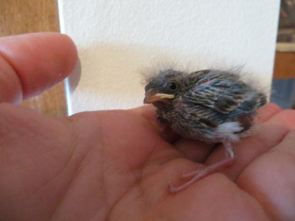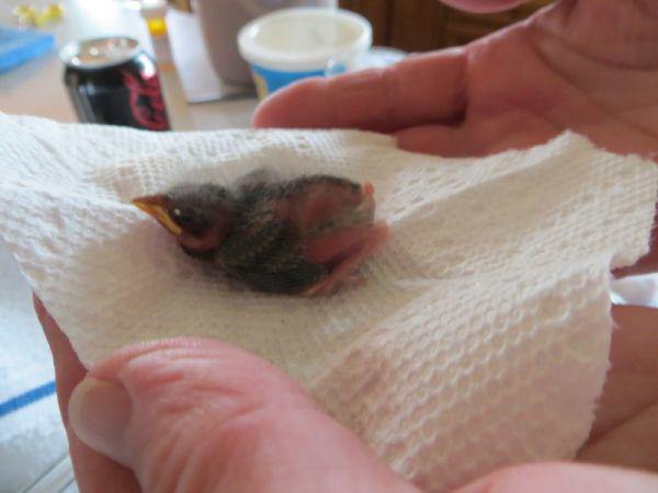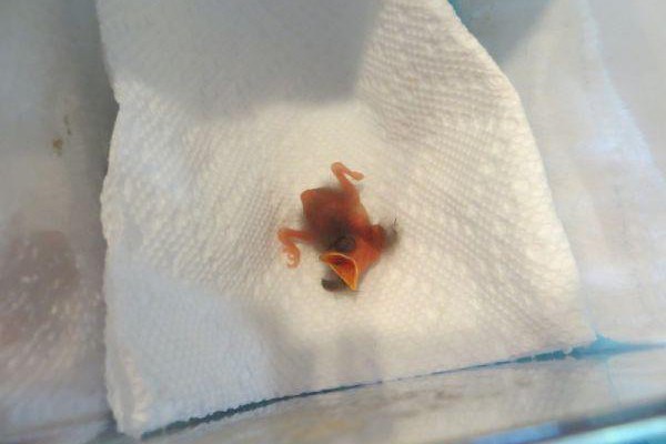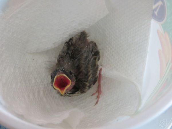 This baby bird is so tiny. Its eyes aren’t even opened yet, and look how few feathers it has.
