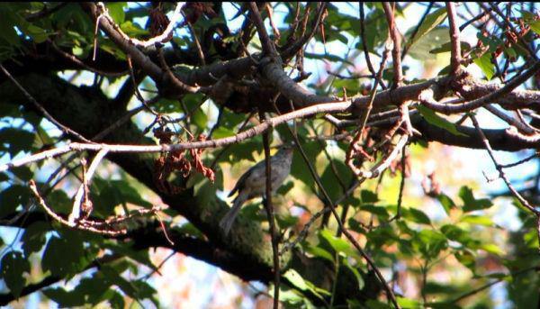 There he is, surrounded by leaves and branches.