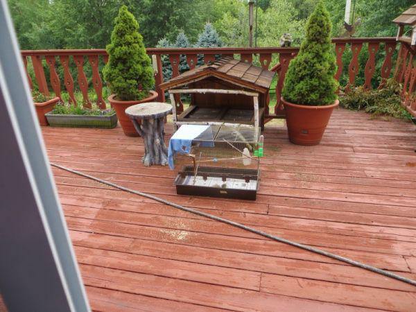I wonder if he was confused at first when they moved his cage outside.