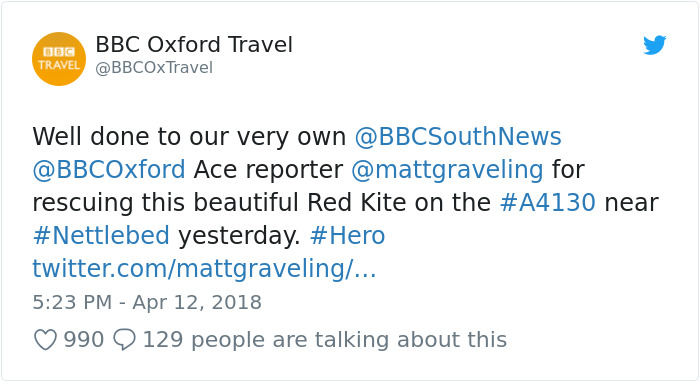 It’s hard to look away when you see an injured animal, no matter how unprepared you are to help them. When Matt Gravelling, a reporter for BBC South, was driving to cover a story, the man thought he was having a regular day. However, it soon became anything but regular when Matt spotted an unconscious bird that seemed to be hurt.