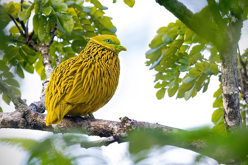 Native to the islands of Viti Levu, Beqa, Ovalau, Gau, and Waya in Western Fiji, this spectacular species is also known as the yellow dove or lemon dove. The golden fruit dove (Ptilinopus luteovirens), is mainly famous for its long slender feathers around its breast, which can appear like human hair from a distance, according to Australian Geographic.