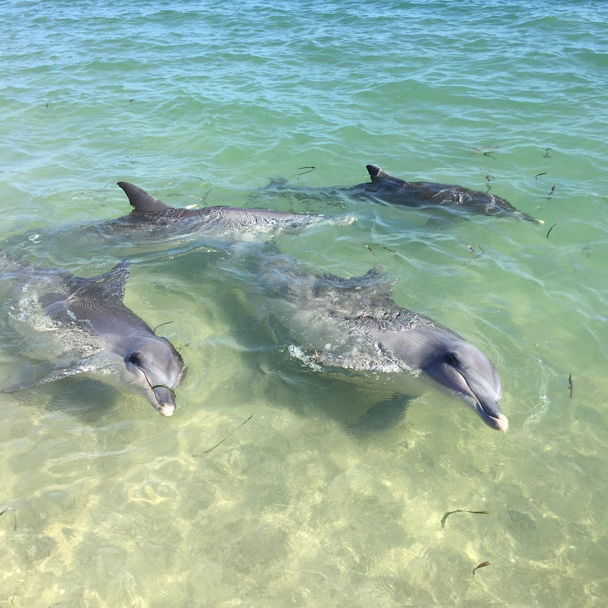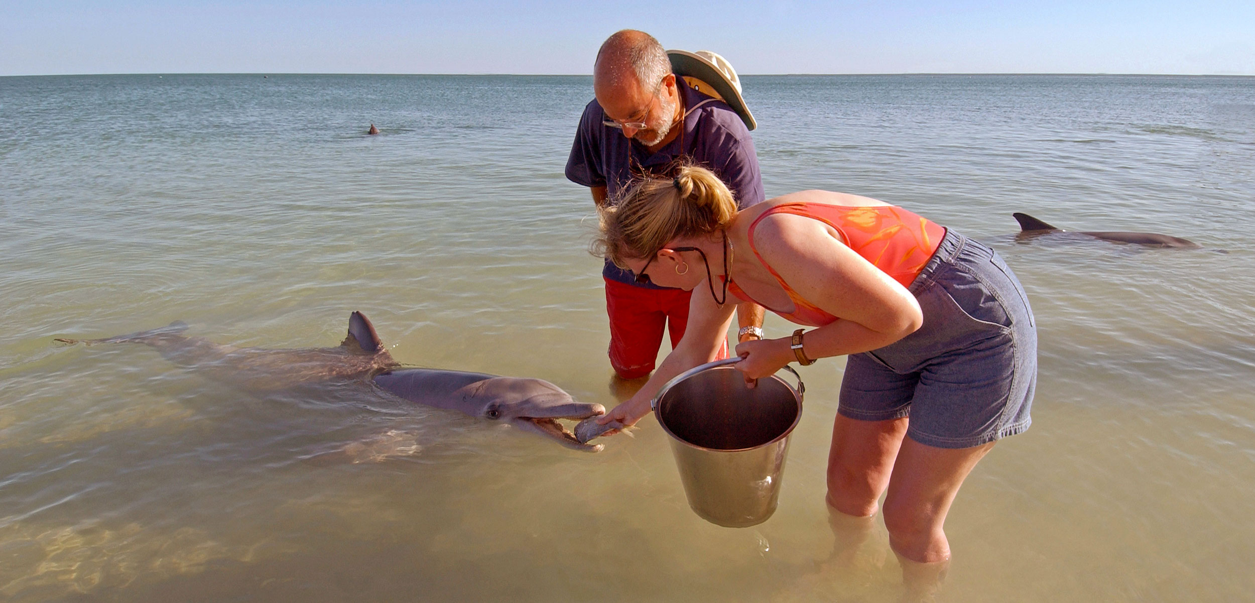 Monkey Mia is home to about two hundred bottlenose dolphins, but only five of adult females are fed by humans as part of the famous Monkey Mia dolphin experience. If some of the regular customers stop showing up for long periods of time, other wild dolphins are trained to visit the beach daily, because the show must go on.