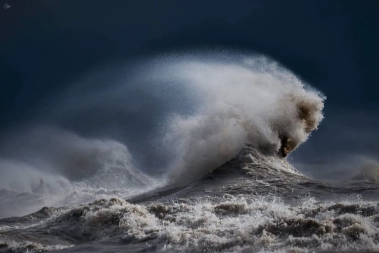 In the three years that Evans has visited Lake Erie to photograph the waves, he’s never seen anything like it. “I was kind of blown away,” he shared. “You see a lot of stuff like that in waves and in clouds, but to have it clear like that was just unreal. That photo sure stood out of all the rest.”