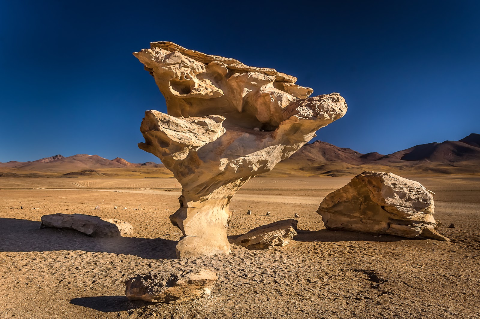 Árbol de Piedra known as “stone tree” is an isolated long-standing rock formation in the Eduardo Avaroa Andean Fauna National Reserve in Bolivia. This 7-meter high rock formation basically, one kind of mushroom rock formed by strong wind eroding process in the sandy desert. This rock looks like a small tree and thus it was named as “Stone Tree”.