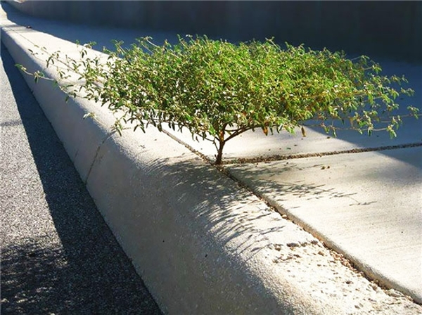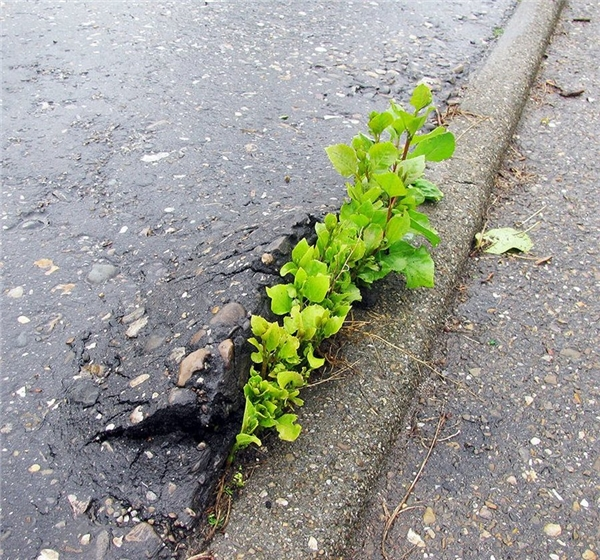 Although the layer of asphalt is thick, hard, and sturdy, the weak and soft trunk of this tree can still break through, grow, bloom and thrive.