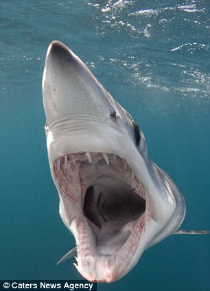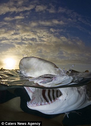 By photographing the animals in such a way, Andy, 47, aims to show that the sharks are far more interested in eating fish than they are people.