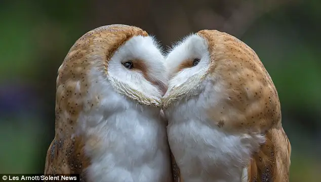 Owls are known as solitary birds, so it is extremely difficult to spot two owls at the same time, let alone a pair of these birds of pray sharing a kiss. Well, a lucky photographer from the Uk has recently managed to witness such an extremely rare sight. Leslie Arnott has managed to snap a few frames of a truly romantic encounter between two barn owls in a small village of Staffordshire, UK.