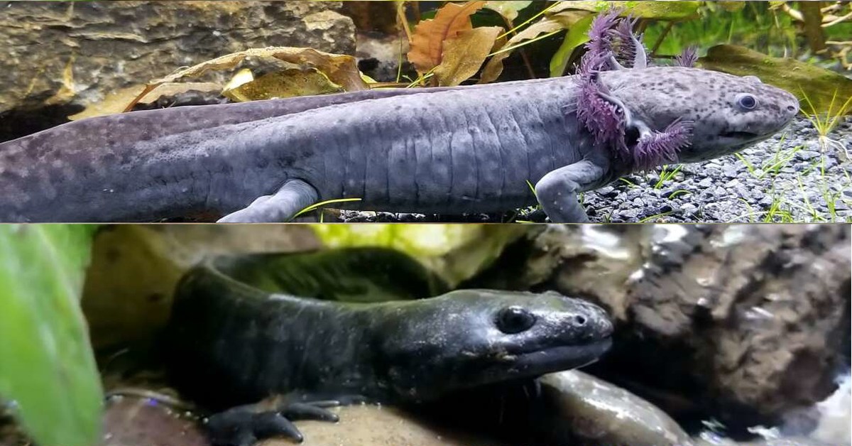 Rare axolotl morphs see their external gills turn to air-breathing, internalized lungs, and their skin changes dramatically. Image credit: Courtney Bailey/Goldfisj
