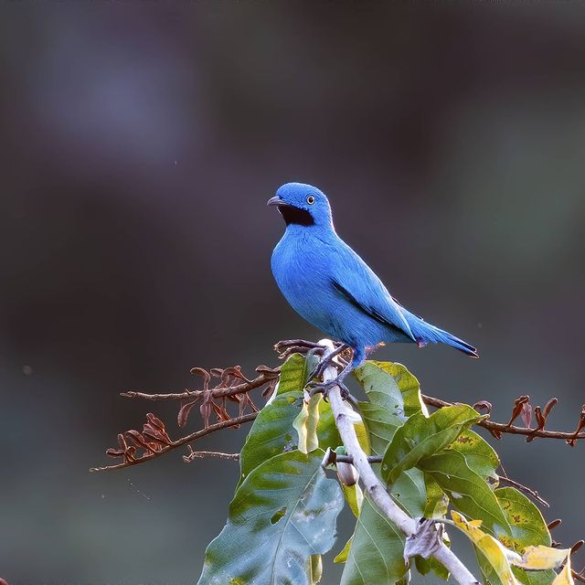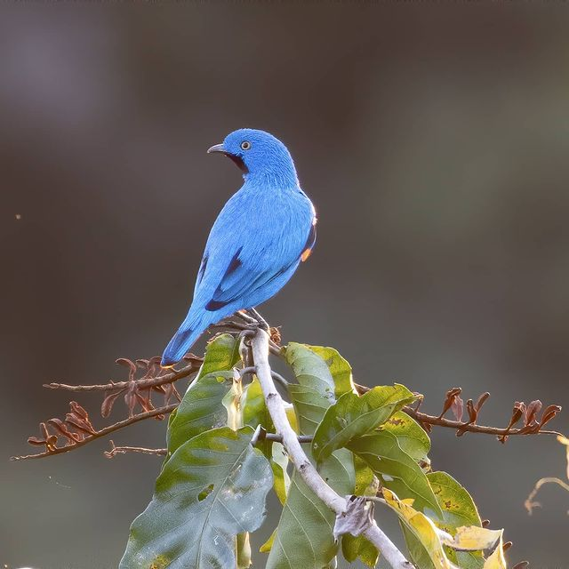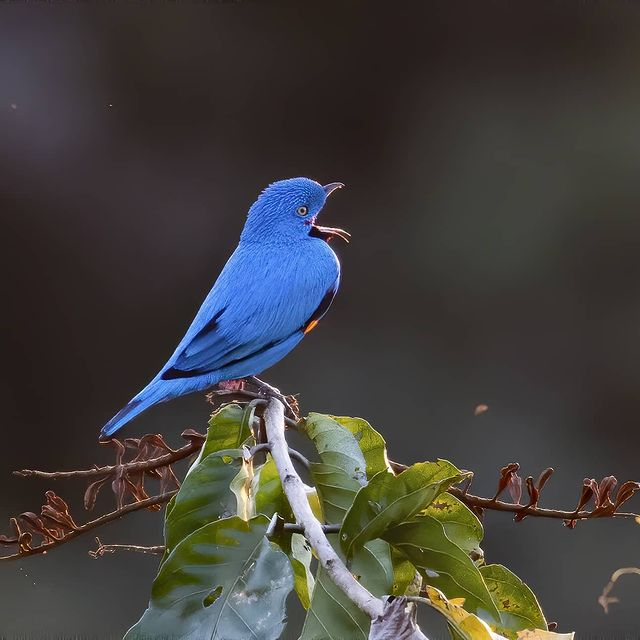 Plumage of pure sky blue is offset by a patch of perfectly placed plum.