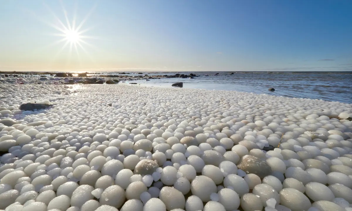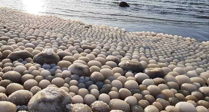 In Finland, a rare and intriguing natural phenomenon has recently been spotted, known as “ice eggs.” These icy spheres form under highly specific conditions, making the sighting a unique and remarkable one. The discovery was made by Risto Mattila, an amateur photographer, and his wife, as they were strolling along Marjaniemi beach on Hailuoto island. The beach was entirely covered by an expanse of small icy balls that stretched out over 30 meters (98ft), creating an awe-inspiring sight.