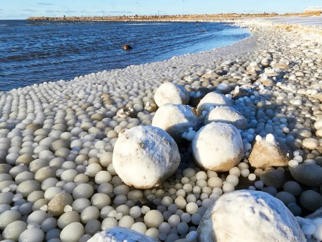 Jouni Vainio, an ice specialist at the Finnish Meteorological Institute, explained that “ice eggs” can form under the right circumstances, which include the right air and water temperature, shallow and gently sloping sandy beach, calm waves or a light swell, and something that acts as a core. This core starts collecting ice around it, and as the swell moves it along the beach, the icy spheres grow in size, creating a remarkable sight.