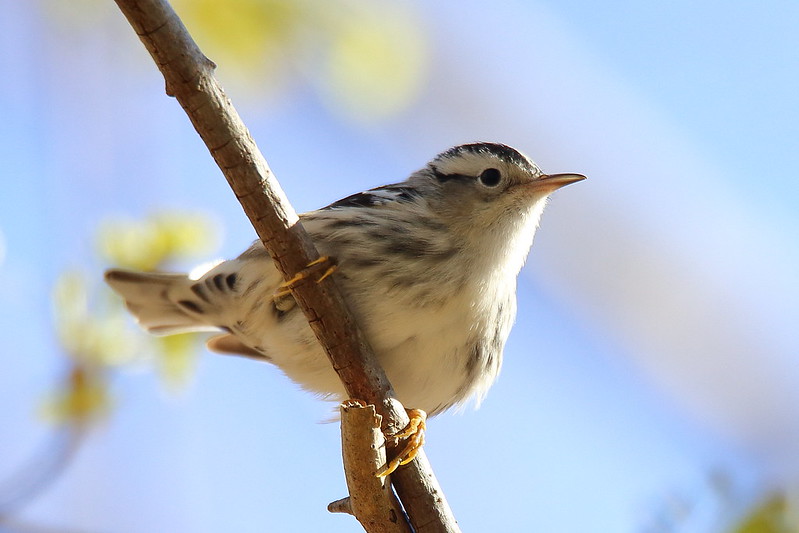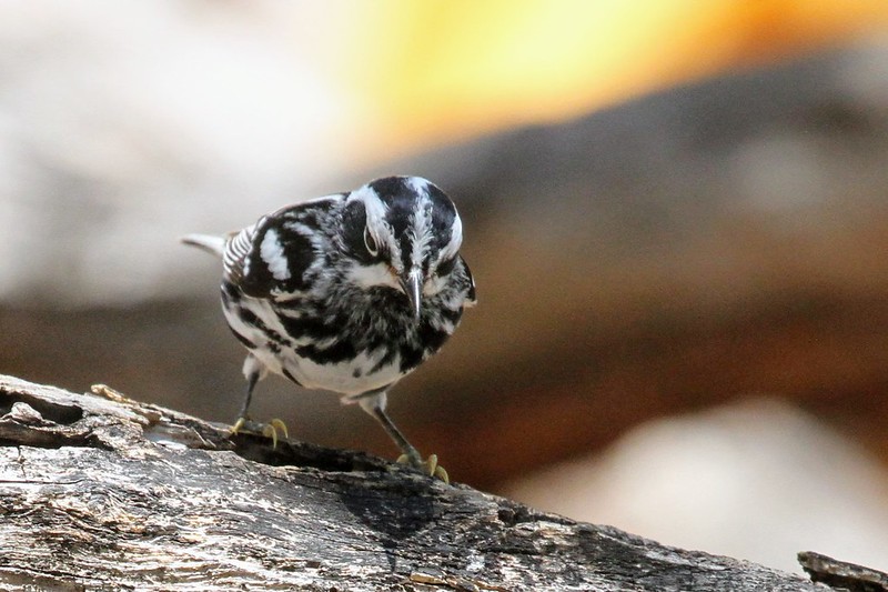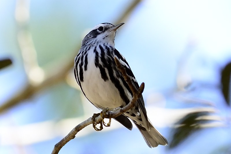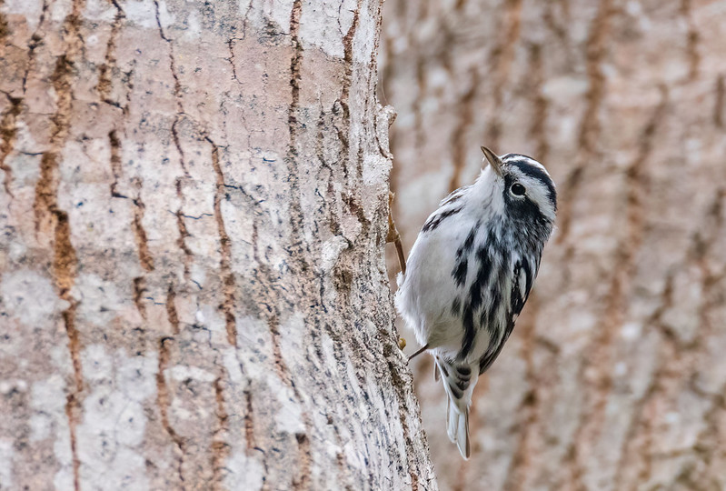 A migratory bird, the Black-and-white warbler breeds in northern and eastern North America from southern Canada to Florida and migrates south to winter in Florida, Central America, and West Indies down to Peru.