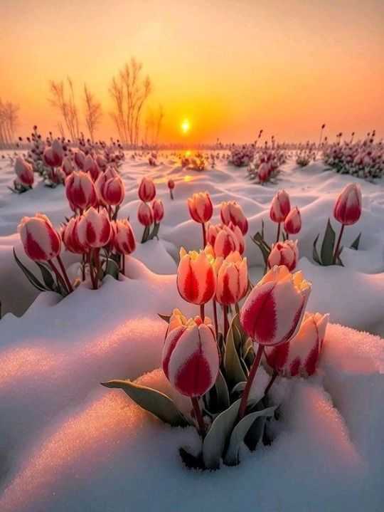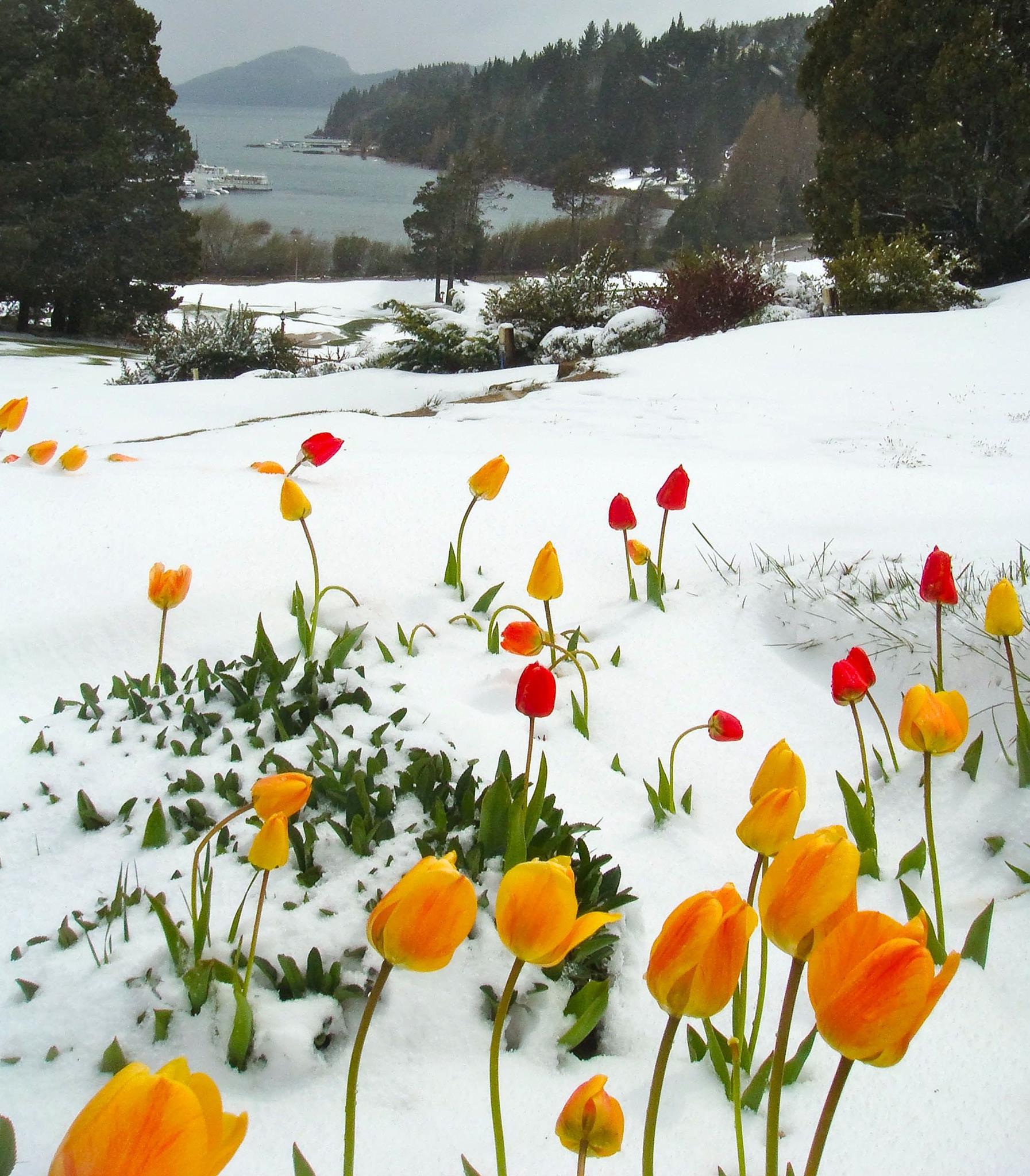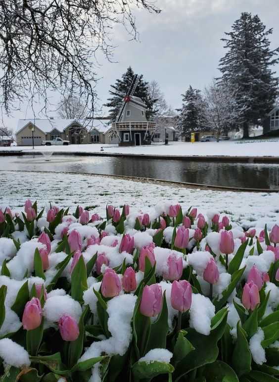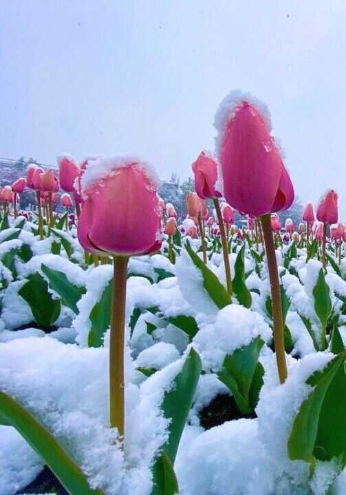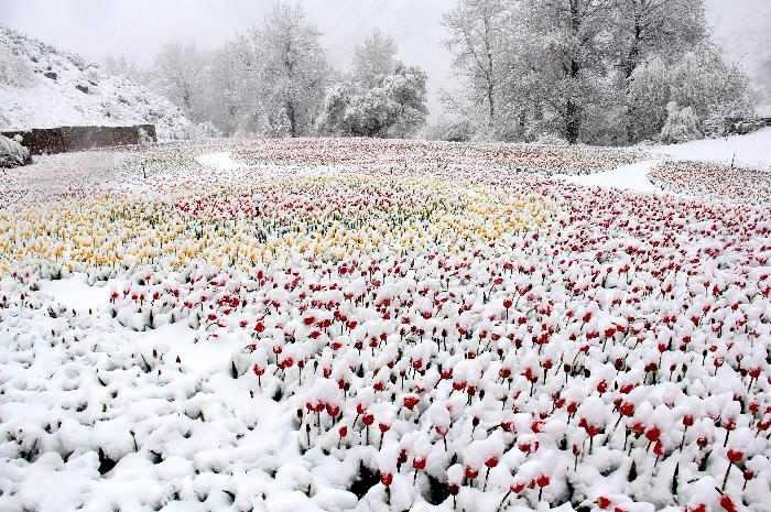 Weird landscapes appeared of bright flowers and snow. People say that there is no reason to worry – these tulips can stand low temperatures – but only if they don’t last long.
