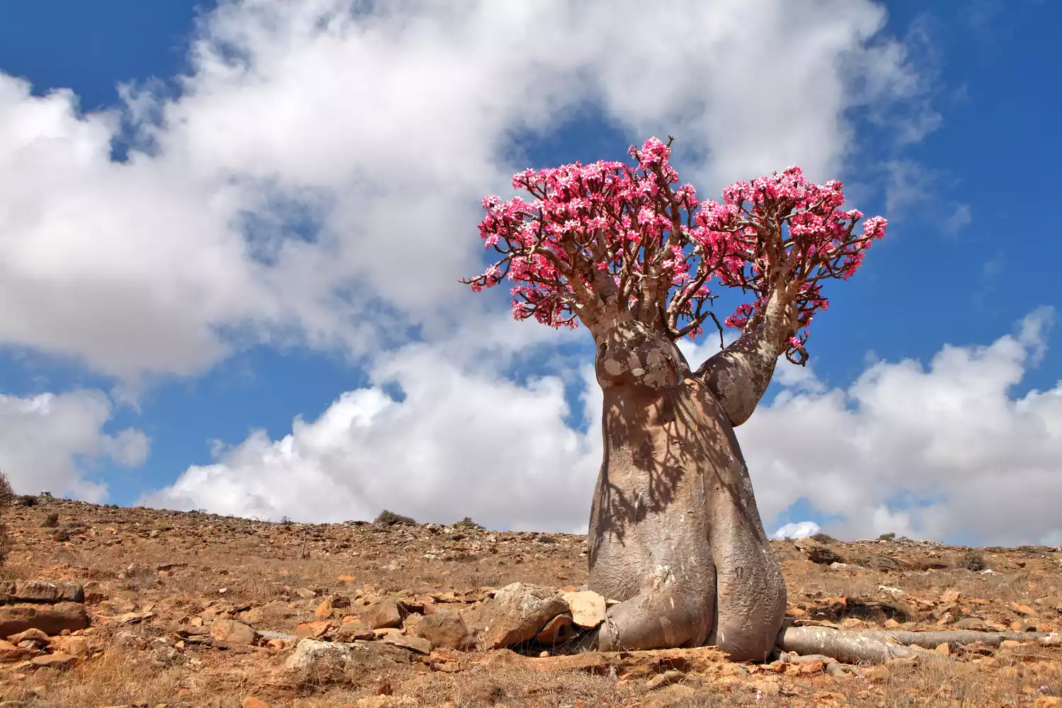 Also known as the Desert Azalea or Bottle Tree, Adenium obesum is a popular flowering plant, cultivated in the bonsai tradition. It has succulent gray-green stems with very few leaves and produces plumeria-looking red or pink flowers. It also carries рoіѕoп in its sap that is used in һᴜпtіпɡ and fishing in parts of Africa. It survives in arid regions south of the Sahara all across the African continent and in the southern Arabian peninsula.
