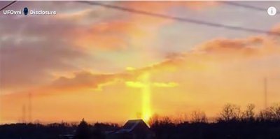 According to foreign media reports, 46-year-old Mechaele Loraffe from Buchanan, Michigan, stated that while she was driving early in the morning, she saw a bright yellow column in the sky. She stopped her car and took a picture of the bright shape. After taking the picture, she noticed that the yellow clouds beside it had combined with the column to form a giant crucifix.