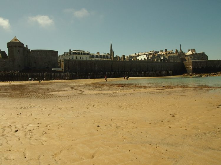 At low tide, the ocean is barely visible from the promenade of Saint Malo, a medieval walled city with a long history of piracy. In fact, the distance from the edge of the waterfront to the ocean is about 2 kilometers. But the 0ver 3,000 large wooden piles sticking out of the sand in straight lines lets you know that not everything is as it seems.