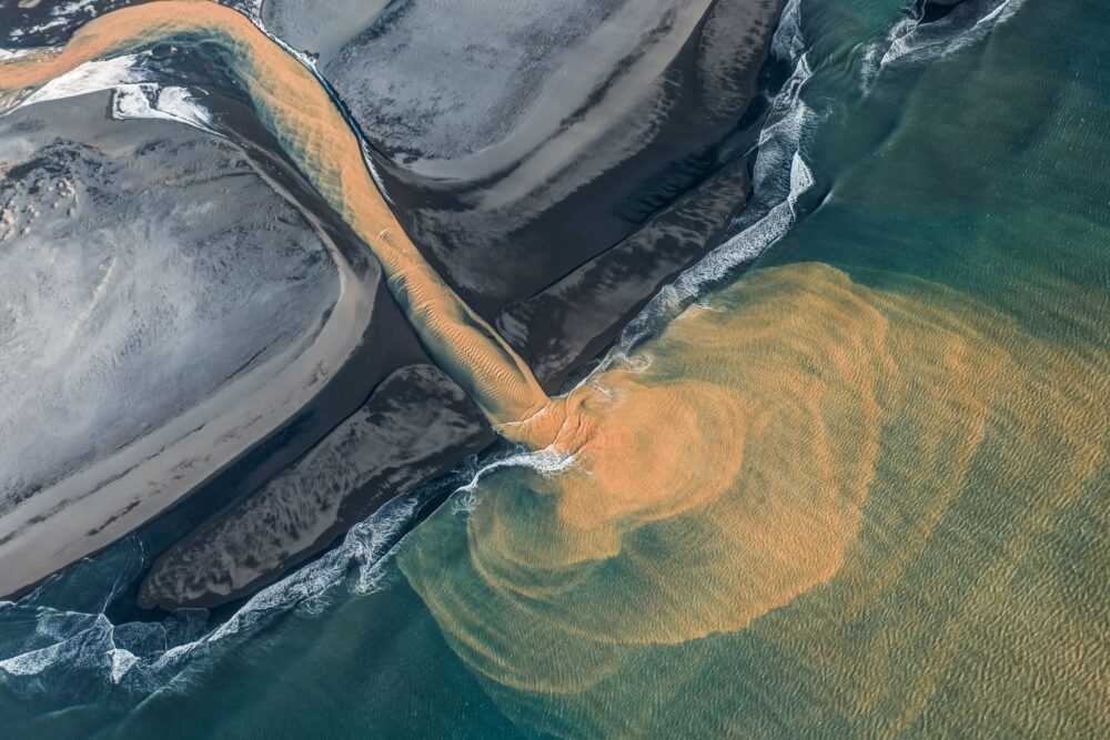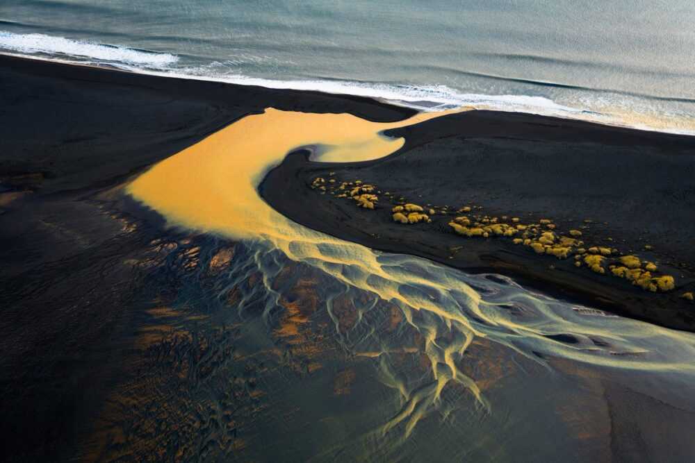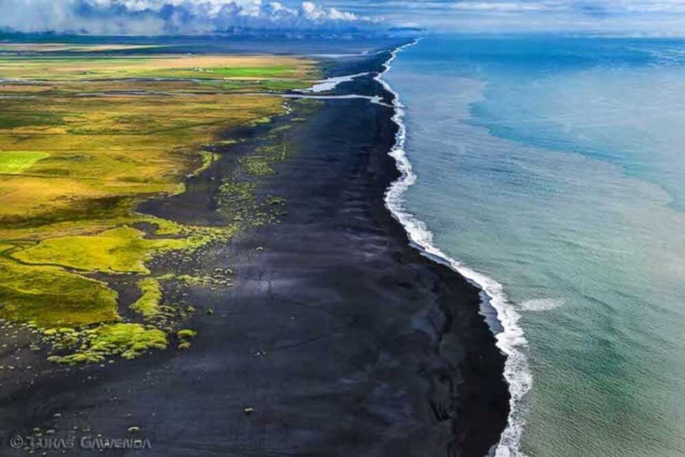 One such place in Iceland that truly captures the essence of its natural beauty is where the Green Fields, Yellow River, Black Beach, and Blue Sea meet.