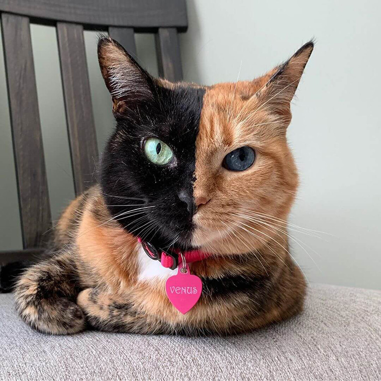 4. Meet Venus, the cat whose face is split into 2 colors.