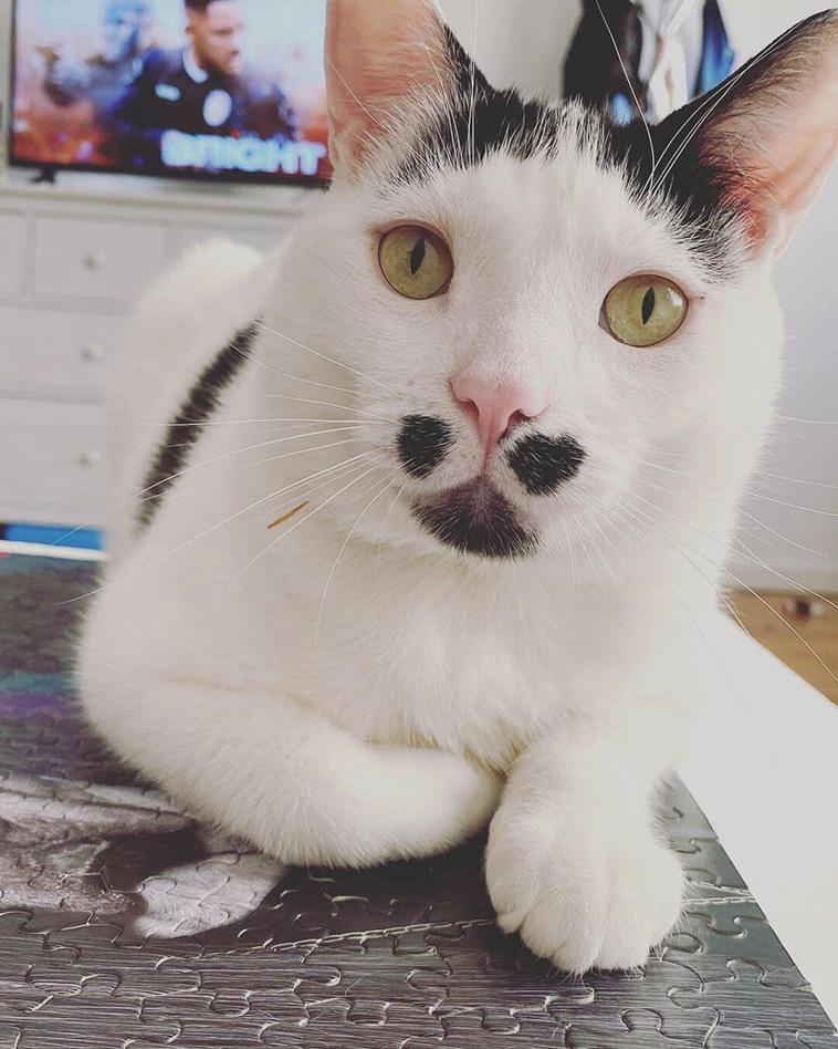 8. This cat has a lightning bolt on its head just like Harry Potter. Oh, and that mustache, of course!