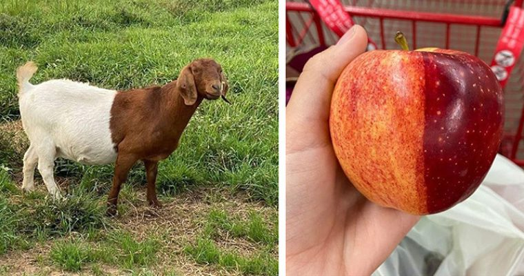 Nature always finds time for a little experimenting, and you know this to be true when you see a goat that looks as if someone was painting it and suddenly gave up, or when you meet a cat that’s “wearing” a huge paw print of another cat on its back. Nature gets creative even when it comes to stones, making them look like juicy slices of meat. Keep your cameras close the next time you go for a walk, and don’t miss all the little miracles around you.
