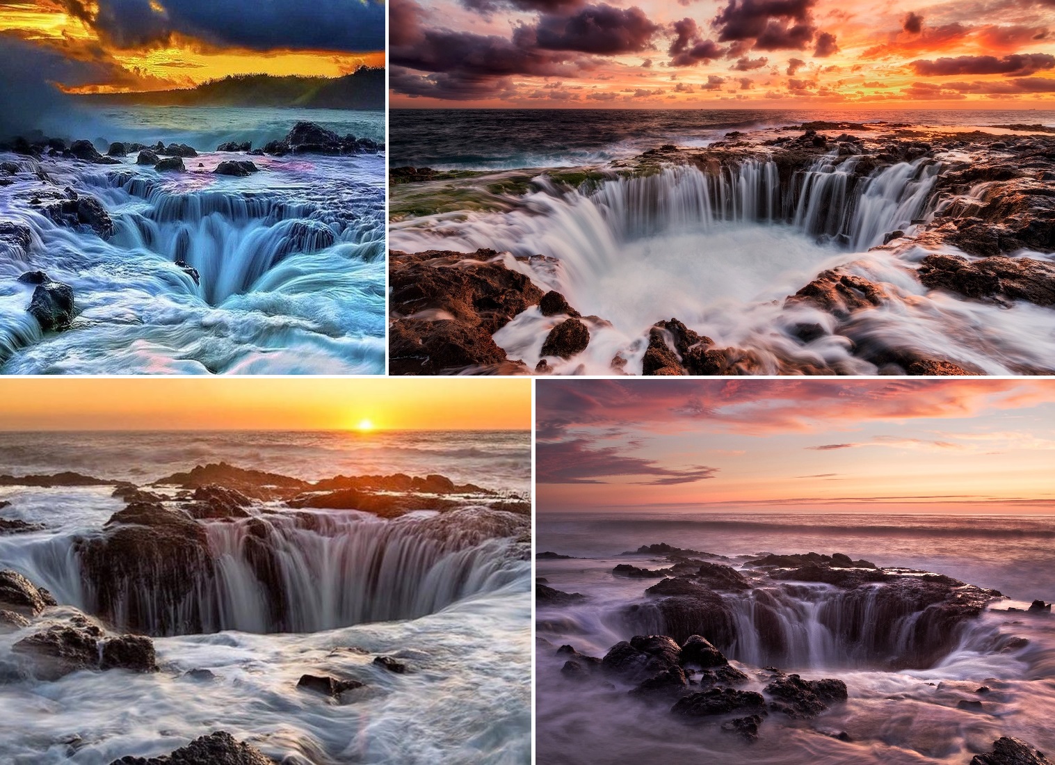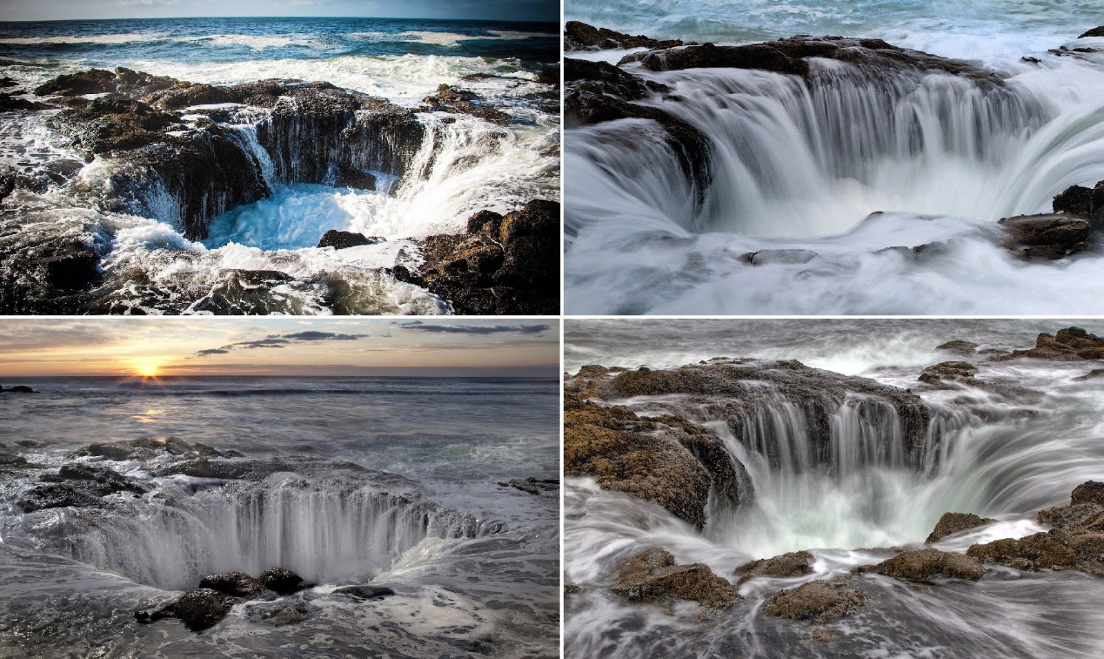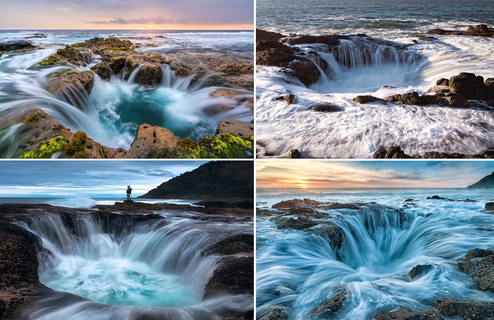 “Sitting on the edge of the Oregon coast is what appears to be a gaping sinkhole that never seems to fill despite the unbroken stream of sea water that drains into it, but Thor’s Well, as the natural wonder is known, is not bottomless, but it is very dangerous.” – Atlas Obscura