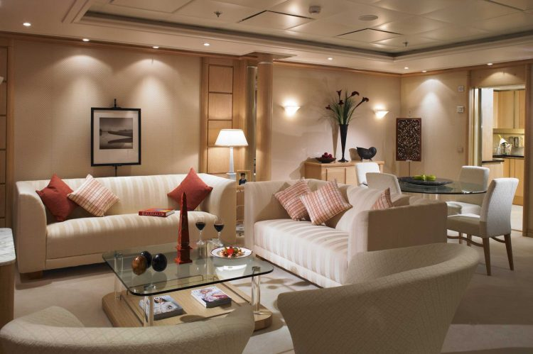 Apart from visiting the most beautiful locations on Earth, residents of The World also have a host of entertainment facilities at their disposal aboard the ship. They can choose from six restaurants, several bars, a tea room, multiple pools, golf simulators, the world’s only life-size tennis court at sea, a library, cinema and a 7,000-square-foot spa and gym, among others.