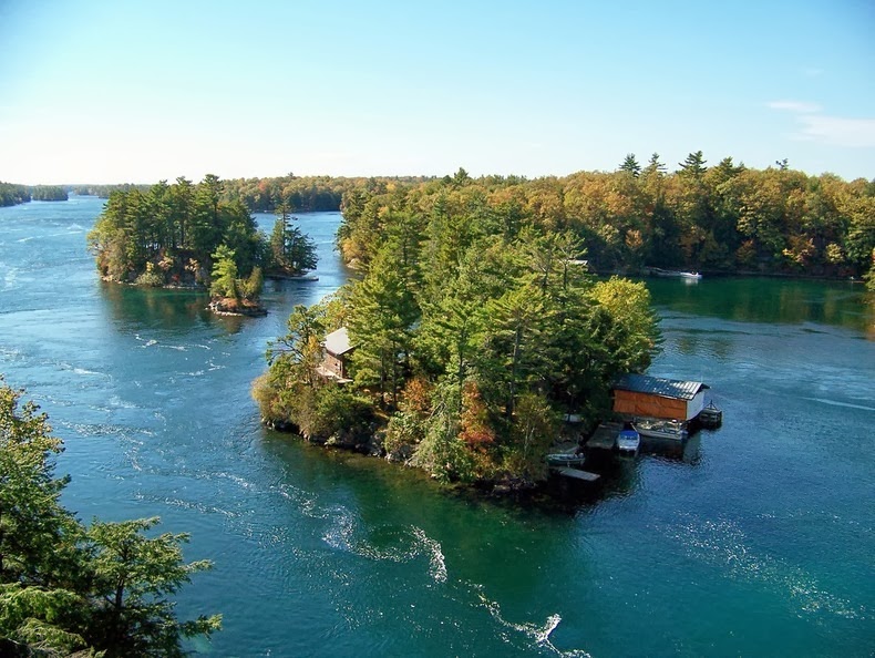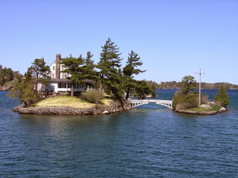 Between the Canada-United States border, there is a beautiful place called Thousand Islands. You might know the name because of the extremely delicious salad dressing, but there is more to Thousand Islands than that. It’s an archipelago consisting of 1,864 islands stretching for about 50 miles. Some of the islands are smaller than others, ranging in size from 40 square miles all the way down to an island small enough for just one single house. In order to be considered an island in the Thousand Islands you must be above water lever all year-long, have at least 1 square foot of land, and have at least one living tree.