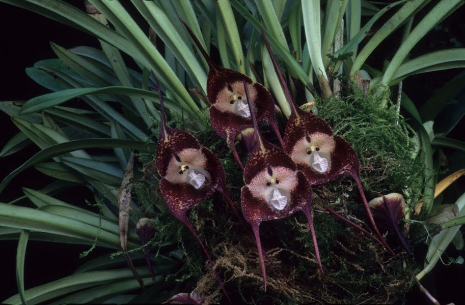 The ā€œmonkey speciesā€ was christened by botanist Carlyle A. Lueren in 1978. Dracula simia translates to ā€œlittle dragon monkeyā€, referencing its long fang like petals. Despite the obvious resemblance to monkeys, the flowers are actually fragrant with the scent of a ripe orange.
