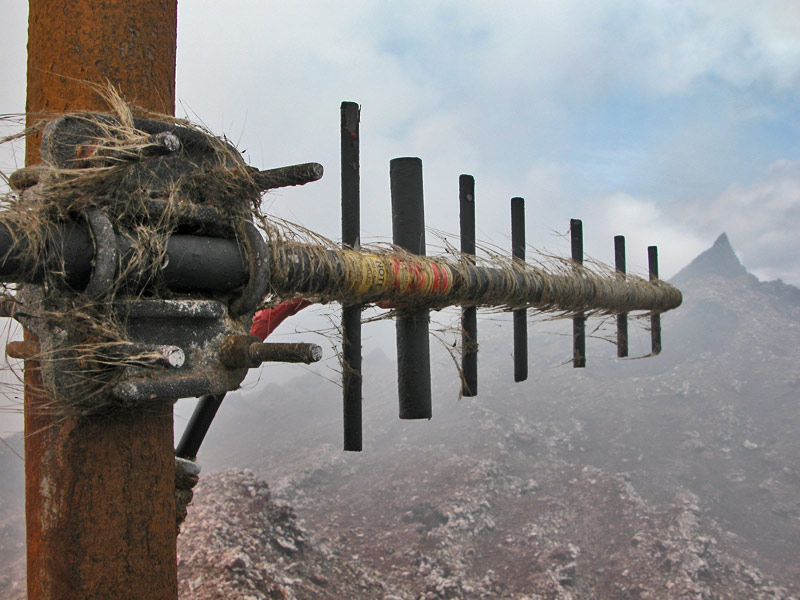 Pele’s hair caught on a radio antenna mounted on the south rim of Puʻu ʻŌʻō, Hawaiʻi. Image credit: United States Geological Survey
