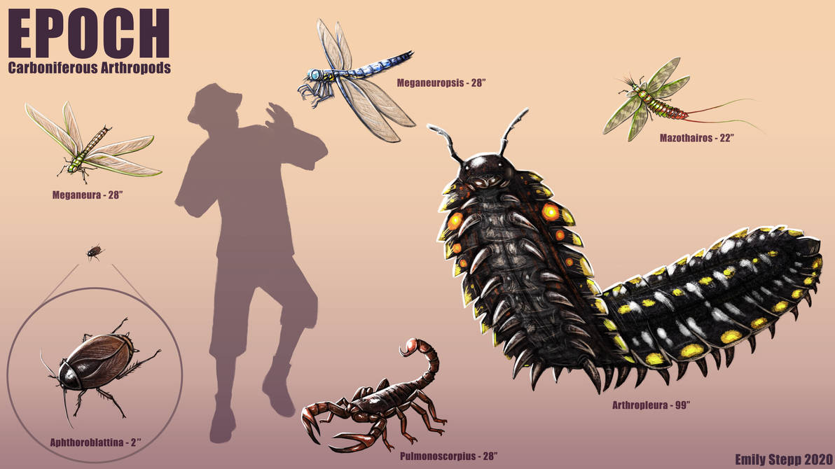 Size comparison of the largest Carboniferous arthropods. Image credit: Emily Stepp