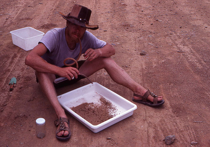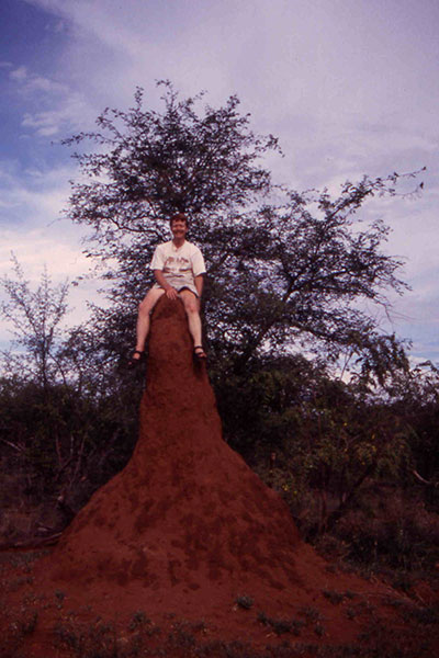 Dr Schmidt travels a lot during his work studying insects. Here, he is pictured atop a termite mound in Australia. Ouch. Image credit: Justin Schmidt via Guiness World Records