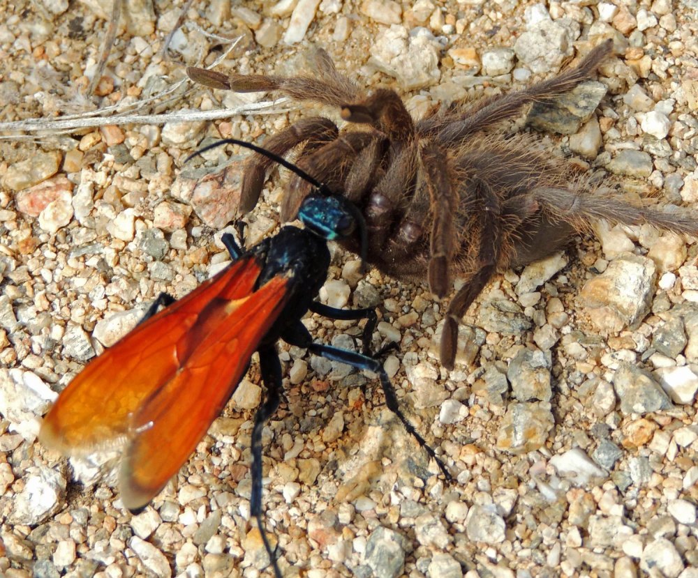 The tarantula hawk is in fact a large wasp. If you are ever stung by one, Schmidt says the best thing to do is to just lie down and scream: “The pain is so debilitating” and “screaming is satisfying,” he advises. Image credit: Jillian Cowles/Courtesy of Johns Hopkins University Press