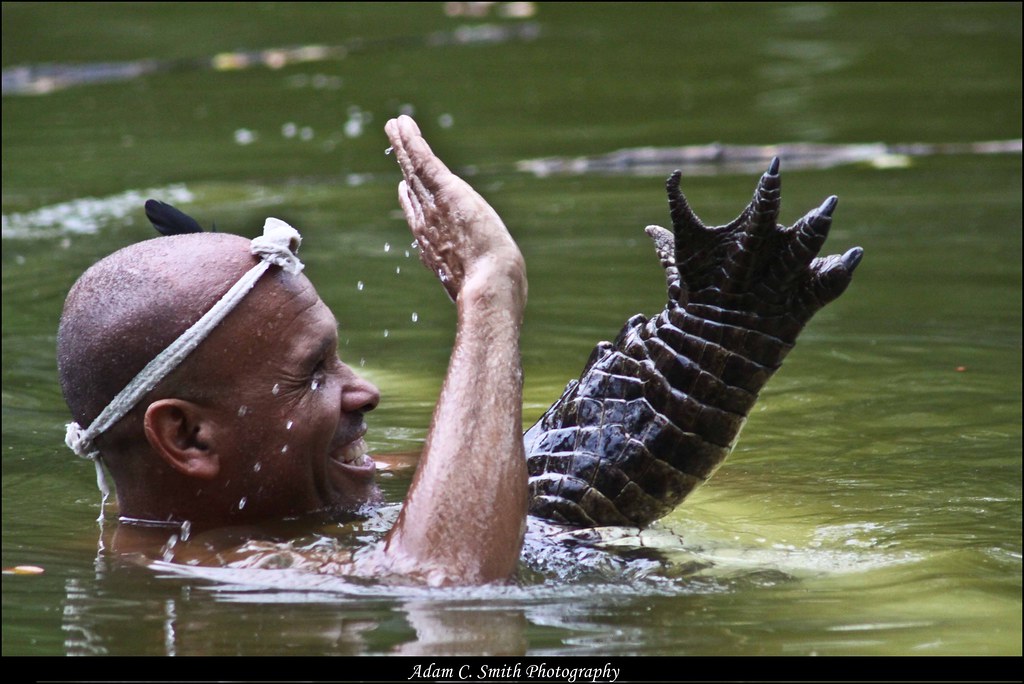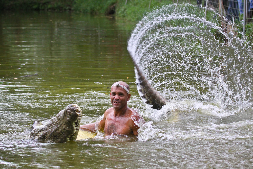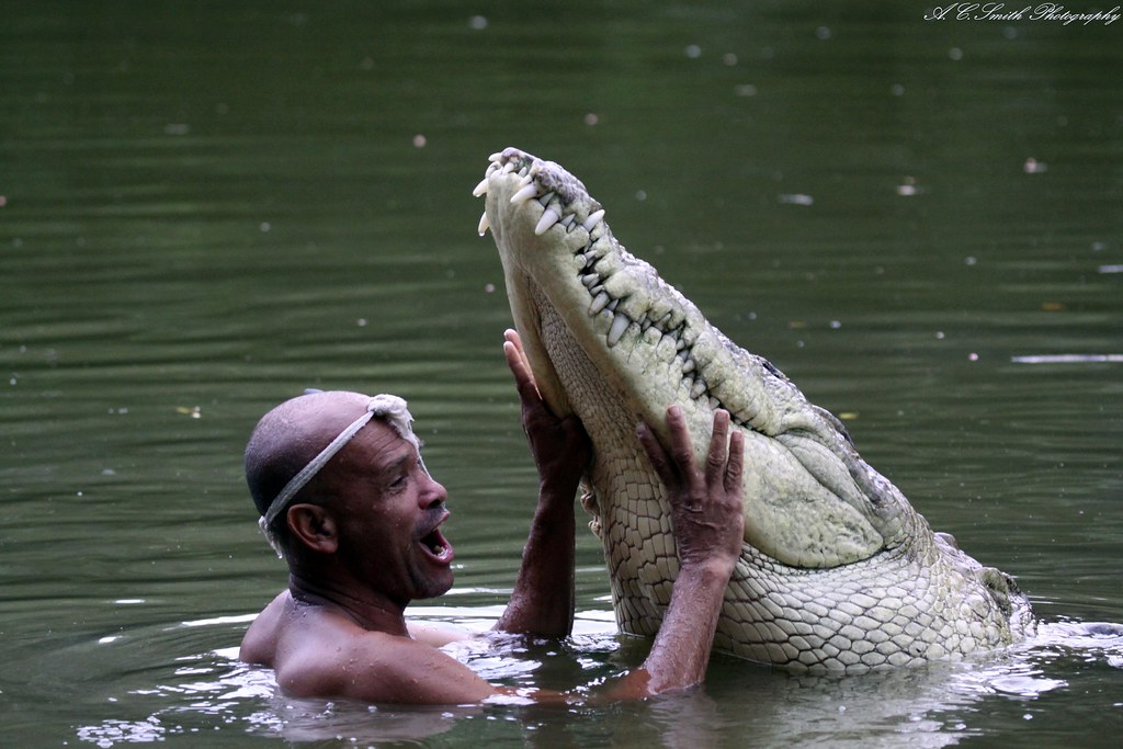 For more than a decade, Shedden and Pocho performed a weekly act for tourists from around the world in a 100 m2 (1,100 sq ft) artificial lake at Finca Las Tilapias in his hometown of Siquirres, Costa Rica. In the video documentary ‘The Man Who Swims With Crocodiles,’ South African filmmaker Roger Horrocks captured the pair shortly before Pocho’s death. He speculated that the gunshot wound to Pocho’s head might have damaged the crocodile’s brain, changing the usual instinctive behavior of the crocodile as a result. Noting examples where humans had been attacked by their reptilian pets even after a decade or more of close ownership, the filmmaker felt that Shedden’s life was in danger every time he stepped into the water with the crocodile. That said, Shedden stated that “After two or three years, something could happen, maybe… but after 23 years of loving each other, nothing has ever happened, so I don’t think so.”