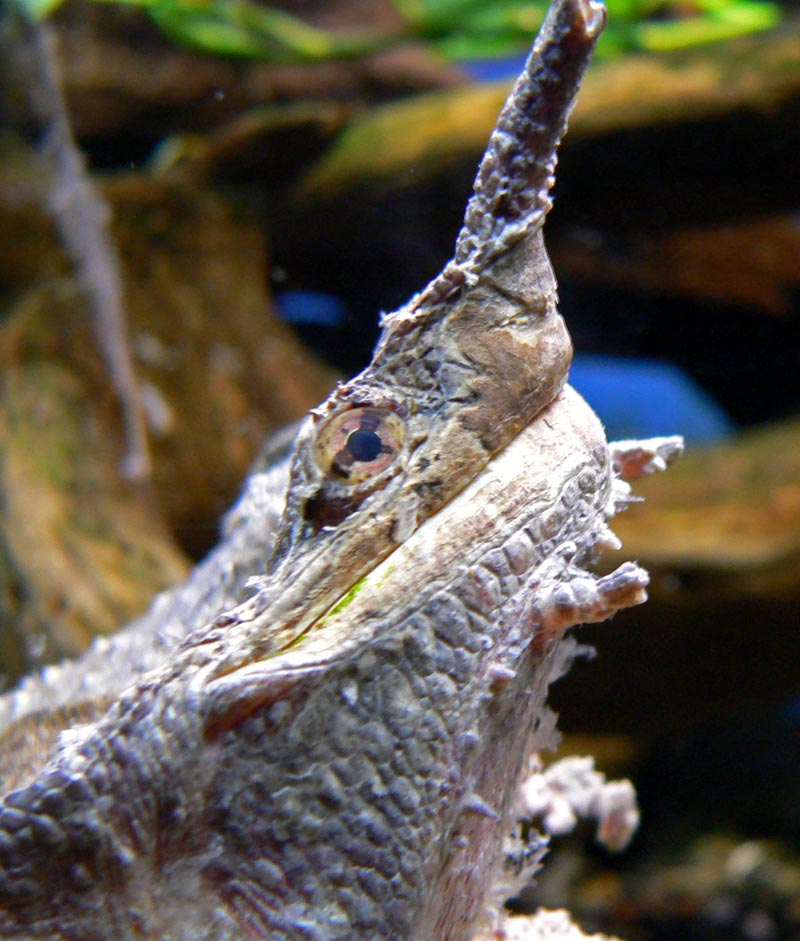 With its disproportionately large head and elongated thick neck, the mata mata looks a bit odd, but always smiles nevertheless. Image credit: Per Se