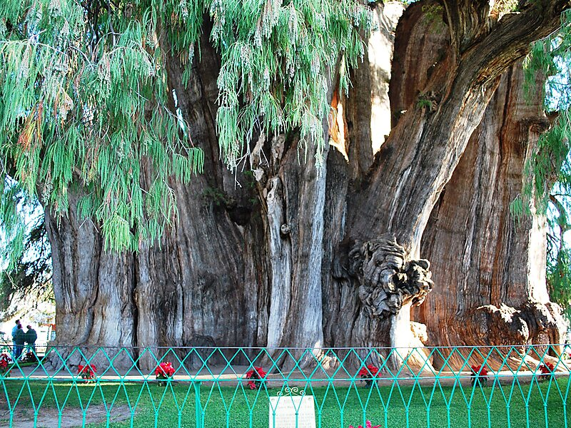 The tree is located in the church grounds in the town center of Santa María del Tule, Mexico. Image credit: Gengiskanhg