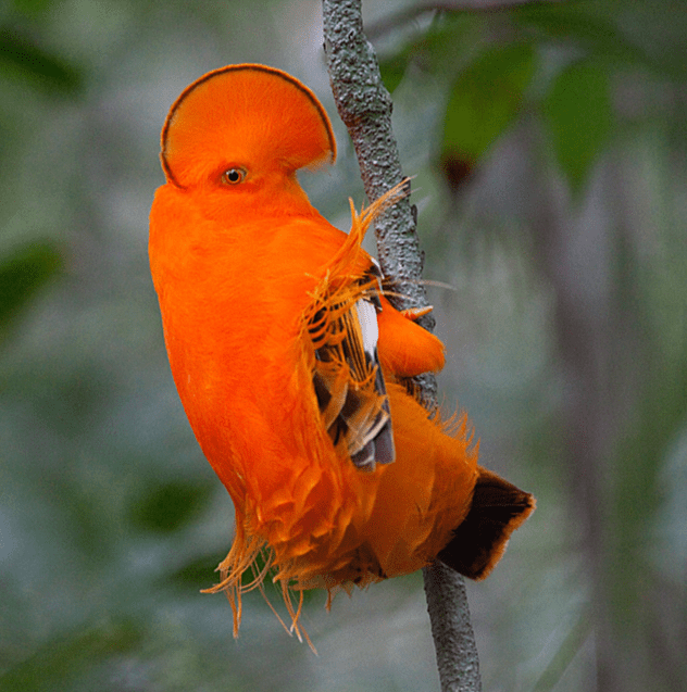 The Cock-of-the-Rock is endemic to South America, living in tropical and subtropical rocky areas. The males of this bird are famous for the prominent fan-shaped crests that they need to attract females.
