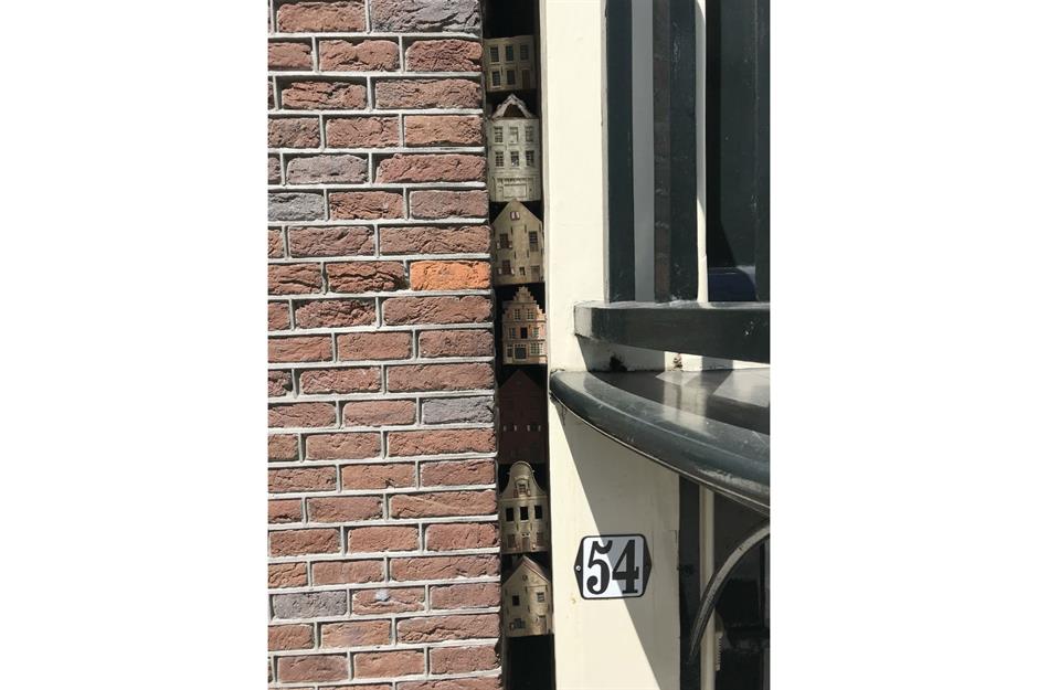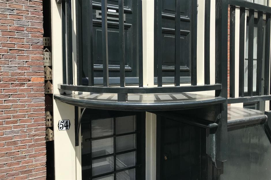 Wandering along Amsterdam’s innumerable waterways, you may find yourself in the canaled city’s Jordaan neighbourhood. Counting down the house numbers on the north side of Westerstraat, you’ll find that there are seven missing addresses. But if you look closely, you’ll spot the seven missing houses stacked one on top of the other in the slight space between the two buildings.