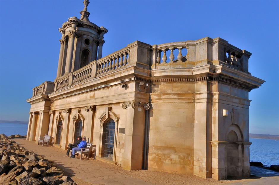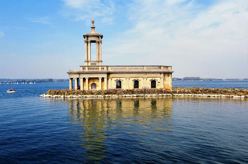 Found in the UK’s East Midlands region, this regal deconsecrated chapel sits on the edge of one of Europe’s largest man-made lakes, though its precarious location might make you look twice. When the tide is high, the church seemingly floats, but when the water level drops, the lower half of the church appears to sink down into the rocks.