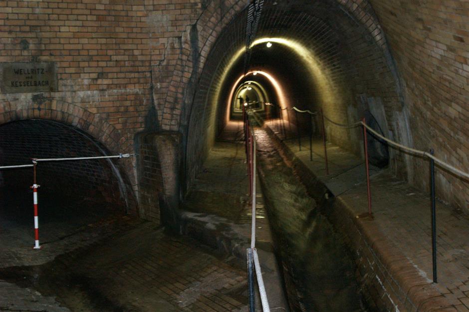 Down the rabbit hole, you’ll discover the science-fiction contraption is really the entrance to the dungeon of the Salzbach canal—one of the oldest in central Europe. A maze of shadowy tunnels running beneath Wiesbaden, most pedestrians above ground have no clue about the subterranean world lurking beneath their feet.