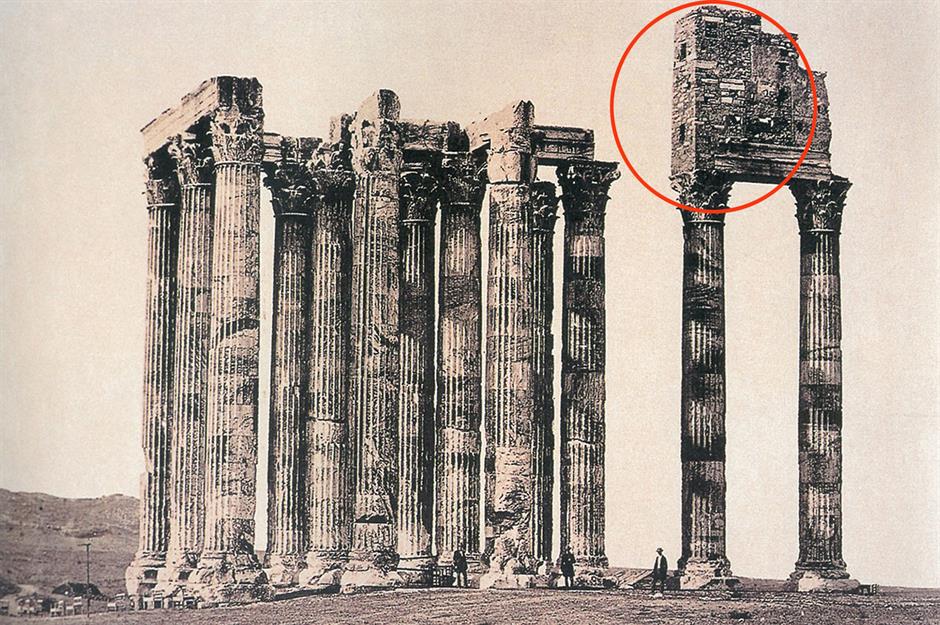 Novelist and PhD student Paul Cooper noticed something very odd about this picture of the fabled Temple of Zeus from 1860. At the top of the pillars, there appears to be a small building. Constructed in the 6th century BCE, the temple is one of the jewels of Athen’s ancient Greek sites and this little den didn’t match either contemporary or current designs. His interest was piqued and he discovered an unusual chapter in this historic monument’s story…