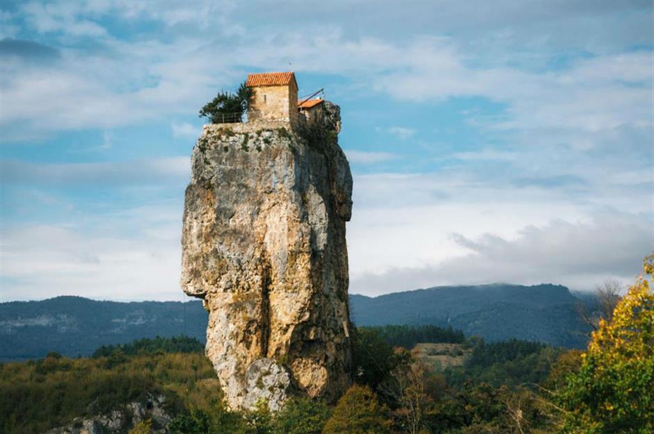 High-altitude homes don’t come much more extreme than the Katskhi Pillar: a 130-foot tall stone column with sweeping views of the western Georgian region of Imereti. Atop the remote pillar sits an ancient church, burial chamber and cottage. It’s home to just one resident, Father Maxime Qavtaradze, who lives as a stylite – a spiritual person lives alone on an elevated pillar as a demonstration of their devotion.