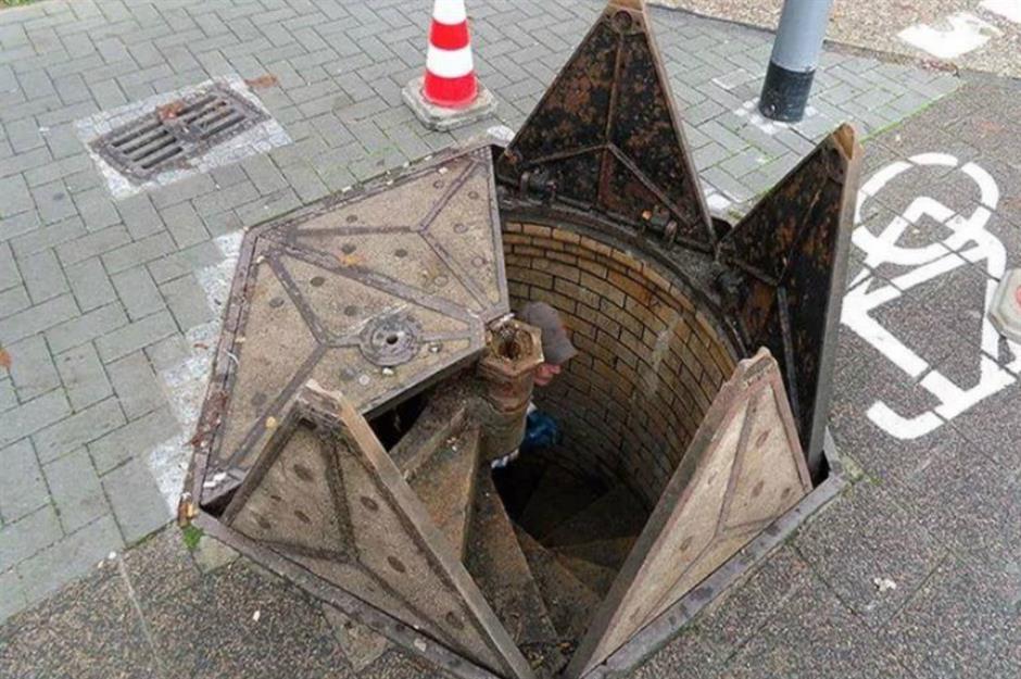 Have you ever found yourself in an awkward situation when you wanted the ground to swallow you up? Maybe a spiralling staircase underneath a pavement hatch will do the trick. With a futuristic spaceship-like entrance, this manhole in Wiesbaden, Germany, invites passersby to take the plunge and venture down underneath the city streets.