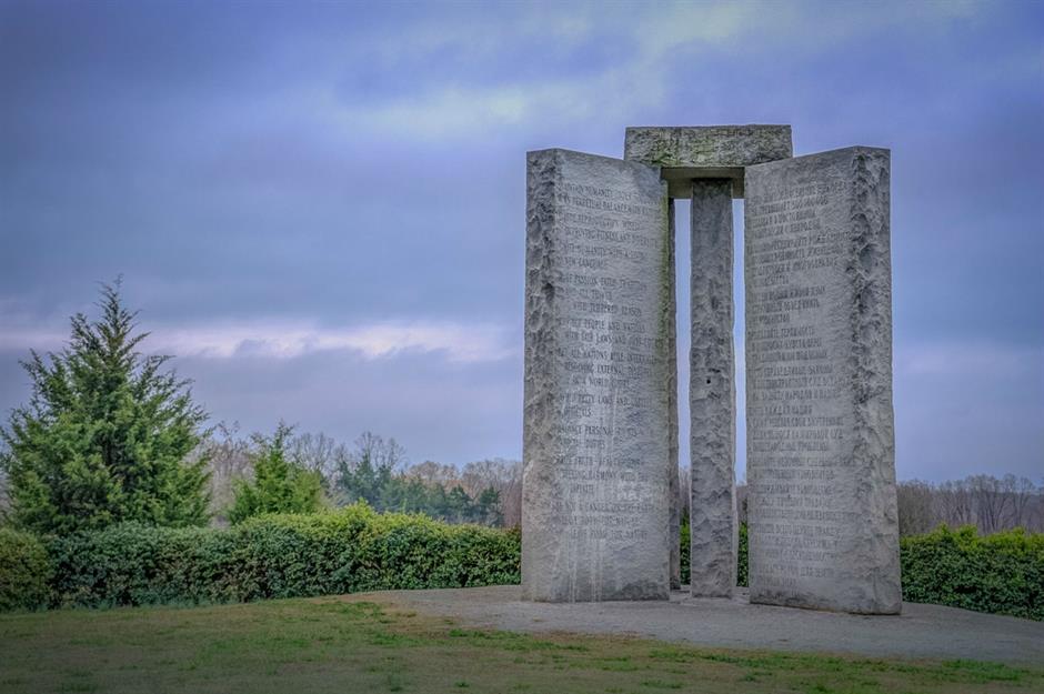 While some theological tableaus date back to ancient times, the Georgia Guidestones were erected in 1980 but are no less mysterious. The American version of Stonehenge is made up of vast granite slabs, measuring 16 feet tall and weighing 20 tonnes. Inscribed in eight language—one for each stone—is what appears to be a 10-step Armageddon guide in English, Spanish, Swahili, Hindi, Hebrew, Arabic, Chinese and Russian. But how did this mystical monument come to be?