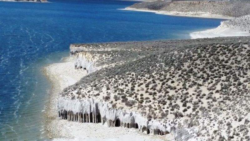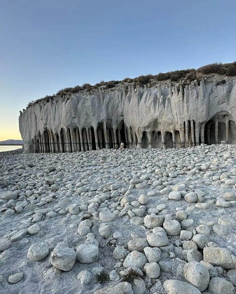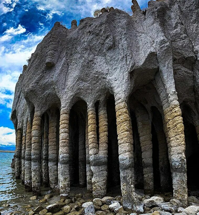 After the Crowley Lake reservoir in California was completed in 1941, some column-like formations with cracks ringing around them were spotted on the eastern shore. Naturally, several theories arose on the origins of these columns. Some put forward the idea that the Crowley Lake columns were the result of volcanic activity. On the other hand, some others thought the wind or water eroded the stone to form these rising spirals.