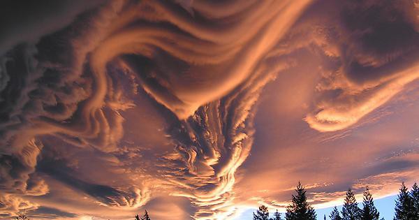 Location: Anywhere under suitable conditions. Lenticular clouds are clouds with an unusual shape, often appearing as a disk or lens. They are often formed when moist air flows over mountains or other structures causing obstructions in cold temperature conditions. Due to their disk-like shape, they have been mistaken for UFOs.