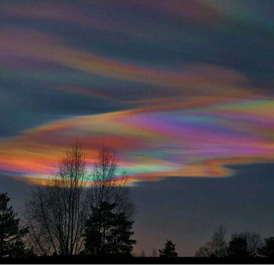 Also known as nacreous clouds, these beautiful clouds have an iridescent blue color and form at high latitudes. Unlike other clouds, they form in the stratosphere at very cold temperatures and receive sunlight from below the horizon.
