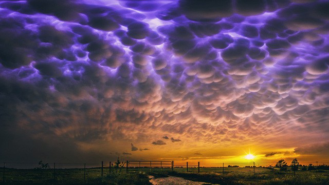 Mammatus clouds have a structure that looks like they are hanging under a thunderstorm. They are caused by cold, heavy, and saturated air that sinks and forms pockets.