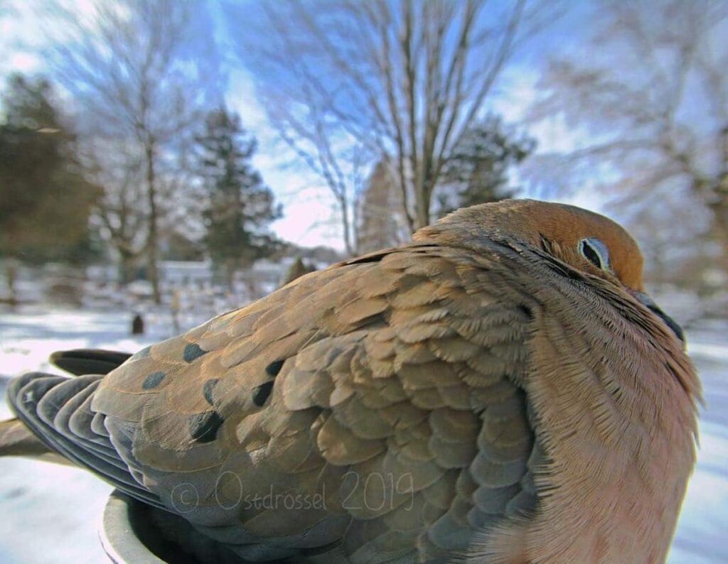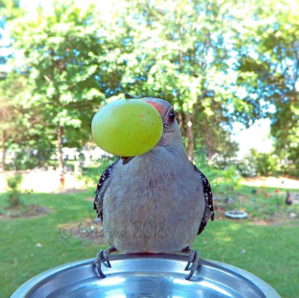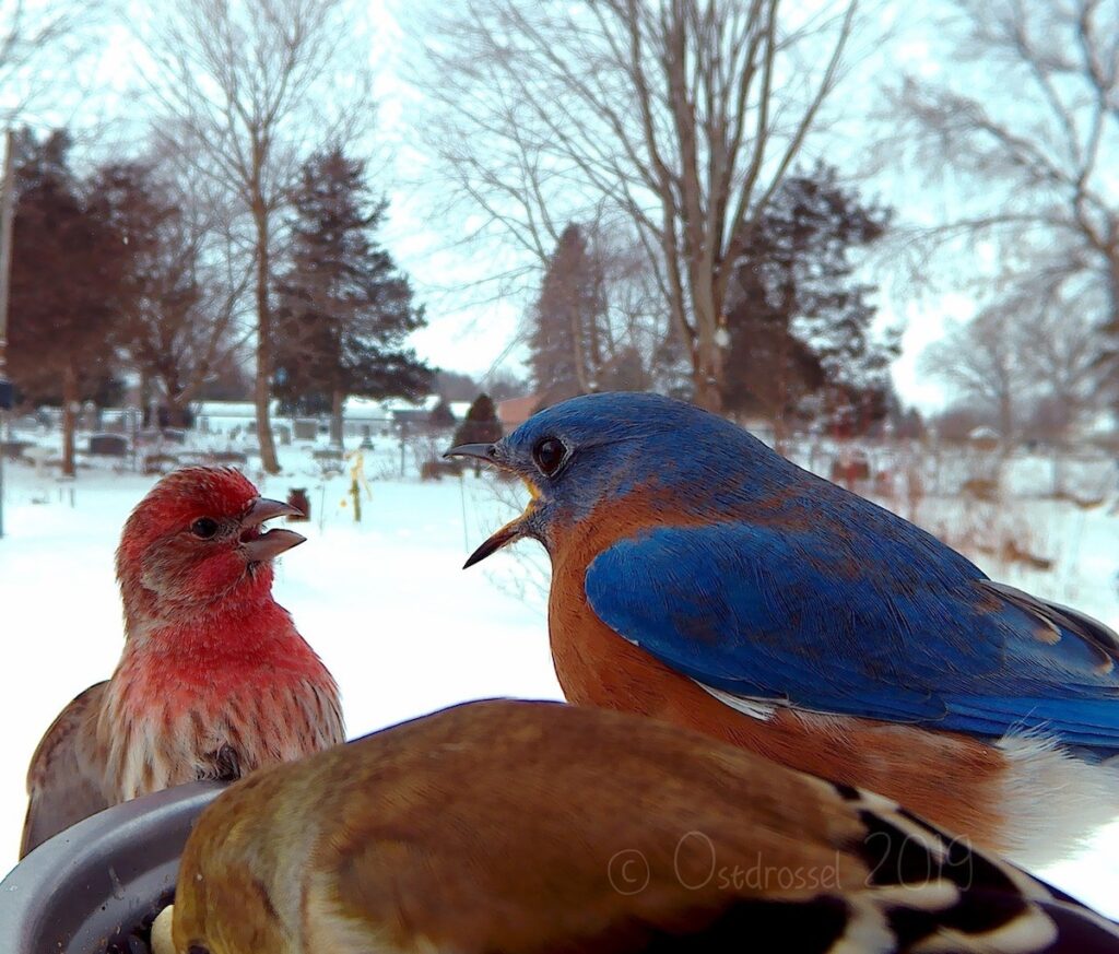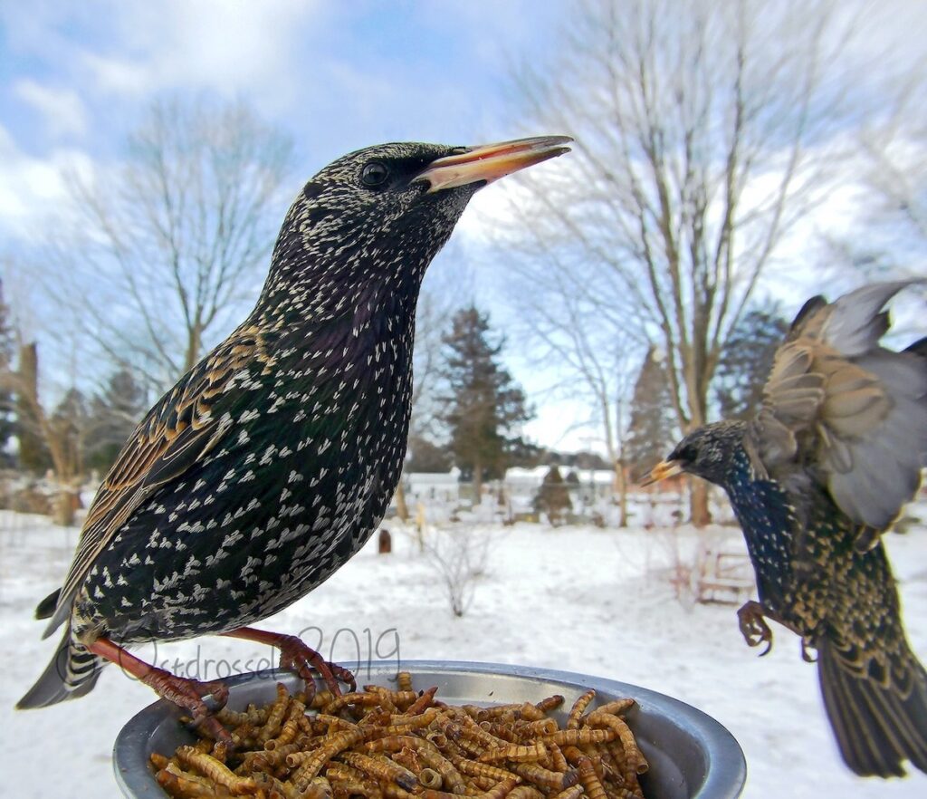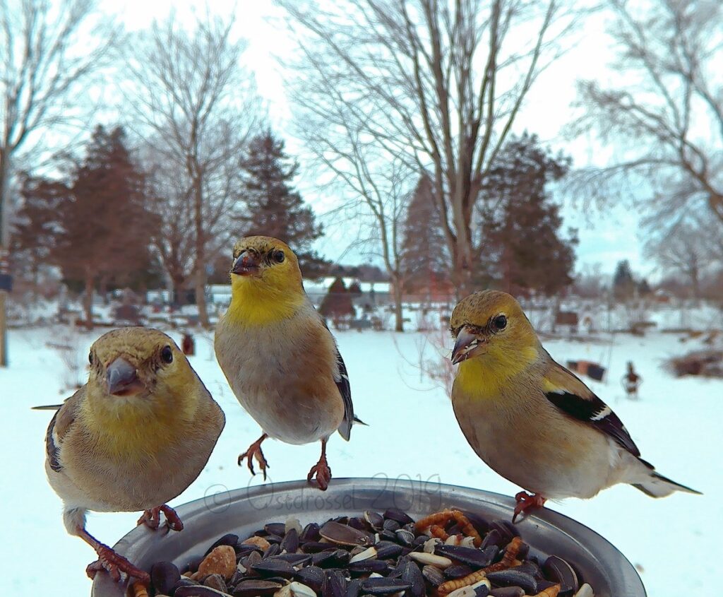 Most of the birds are just there to have a snack, one of our favorites is a crow who has a mouthful of kernels making it looks like a toothy smile.